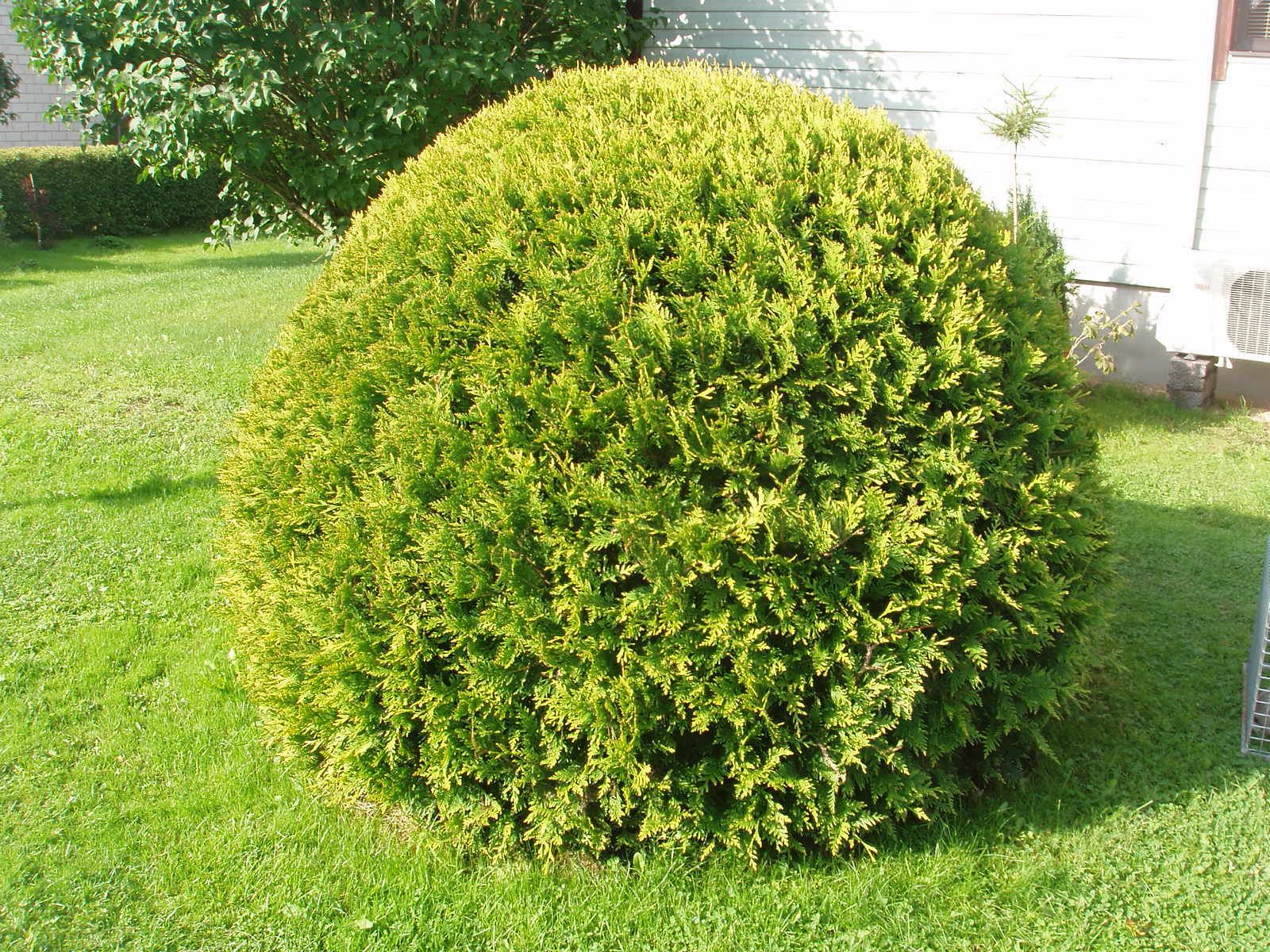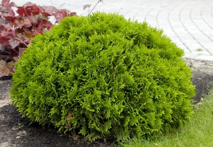 Често сферичните храсти се комбинират с бодхи туя, чието описание потвърждава непретенциозността на иглолистната плантация и нейния изискан външен вид. Всеки може да си позволи да украси градината си с такива растения.