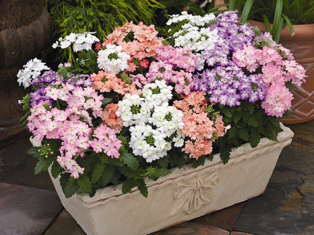 - "Звезден хоровод" от всякакви цветове, пъпките имат оцветен център (ампелна, устойчива на суша вербена);