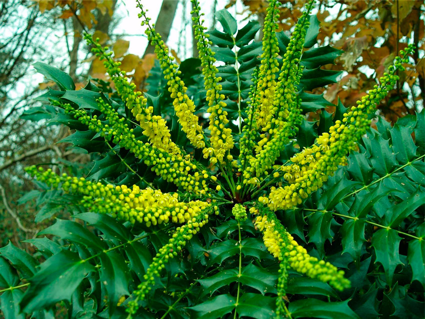 Mahonia holly е вечнозелен храст, който може да оцелее дори при силни студове. Използва се в медицината, приготвянето на храна, декорацията на пейзажи и козметиката.