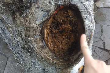 Как да затворите кухина в ябълково дърво върху ствол с цимент или глина