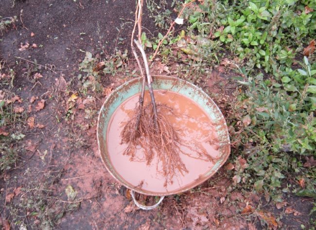 Преди засаждане можете да потопите кореновата система на ябълковото дърво в бърборене с корен стимулант.
