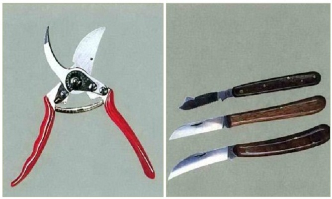 За приготвяне на резниците се използват градински ножици - секатори, благодарение на които се прави плавен, изчистен разрез. За присаждане зад кората се използва специален нож за пъпка, в който има допълнително острие за отделяне на кората.