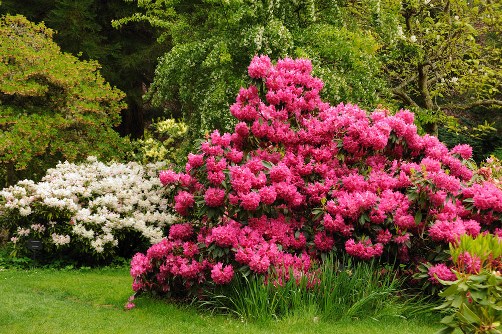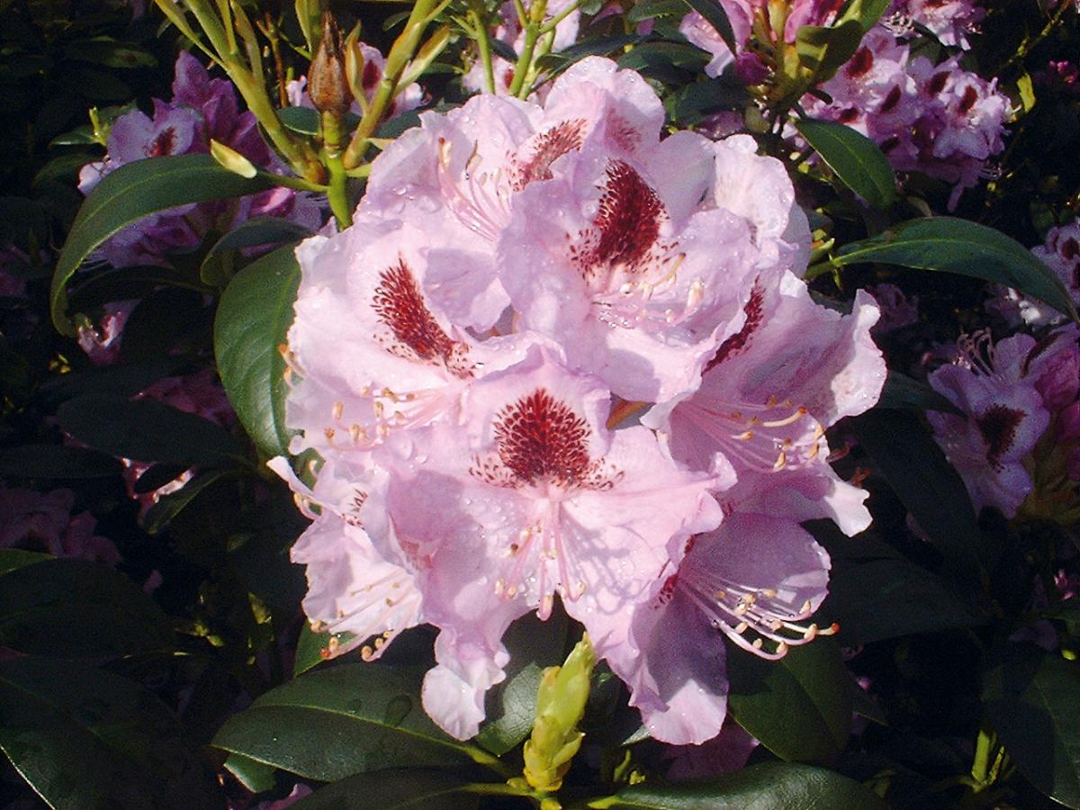 - Рододендрон дървовиден има розови цветя с малък диаметър, събрани в малки гроздове от 6 парчета. Цъфтежът продължава около месец. Дървото расте много бавно, зимоустойчиво, достига височина 3 м;