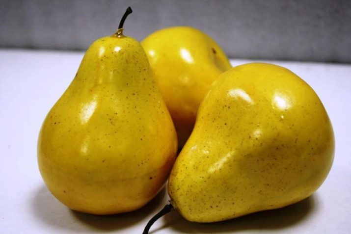 Малките жълти бучки плодове тежат 110-130 g.Те имат правилната форма на сълза, но поради туберкулите изглеждат криви. Гладката, мазна кожа издава лек лъскав блясък. Много хора обичат пулпата на катедралната круша заради нейния деликатен аромат и леко кисел вкус на гранулираната пулпа. Плодовете узряват през втората половина на август и могат да престоят не повече от 10-12 дни. Този сорт расте във всеки климат.