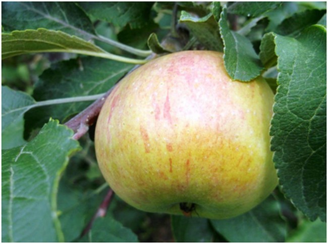 Ветеран са средно големи конични ябълки. Кората е лъскава с бял цвят, предимно жълт с розови петна и ивици. През първите няколко години след засаждането дърветата се нуждаят от азотни торове, фуражи с високо съдържание на бор.