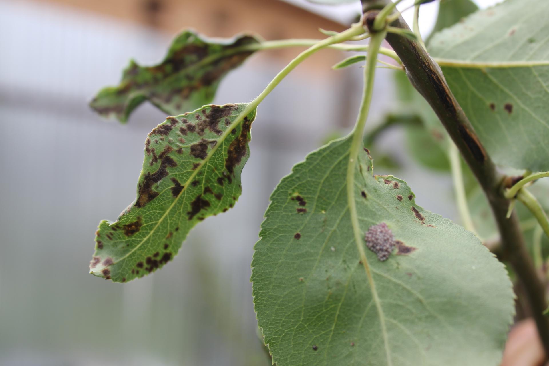Това е често срещана причина, поради която крушовите листа почерняват и се извиват. Често се засягат тригодишни разсад. Патогенните микроорганизми действат като причинители на гъбични заболявания. Те са в състояние успешно да презимуват на подходящо място: