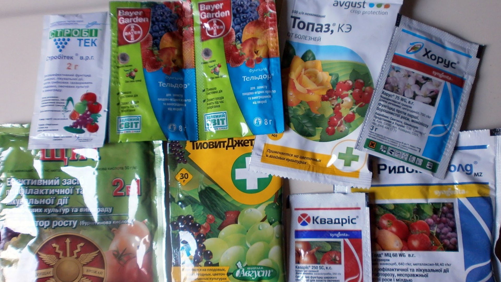 - Смесете Azophos - 30 g, Skor - 2 ml, Bayleton - 6 g, меден оксихлорид и вода - 10 литра.