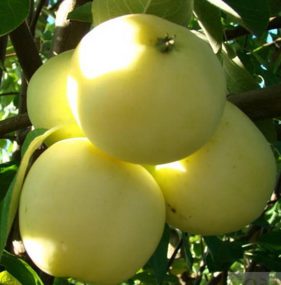 Ябълките са със среден размер. Неправилна форма, с широки ребра, кръгло-конична. Плодовете имат шев. Цветът е жълто-зелен, но под кората на ябълките е чисто бял. Ароматни ябълки. Пулпът е сочен, с лека киселост. Съдържанието на калории е ниско.