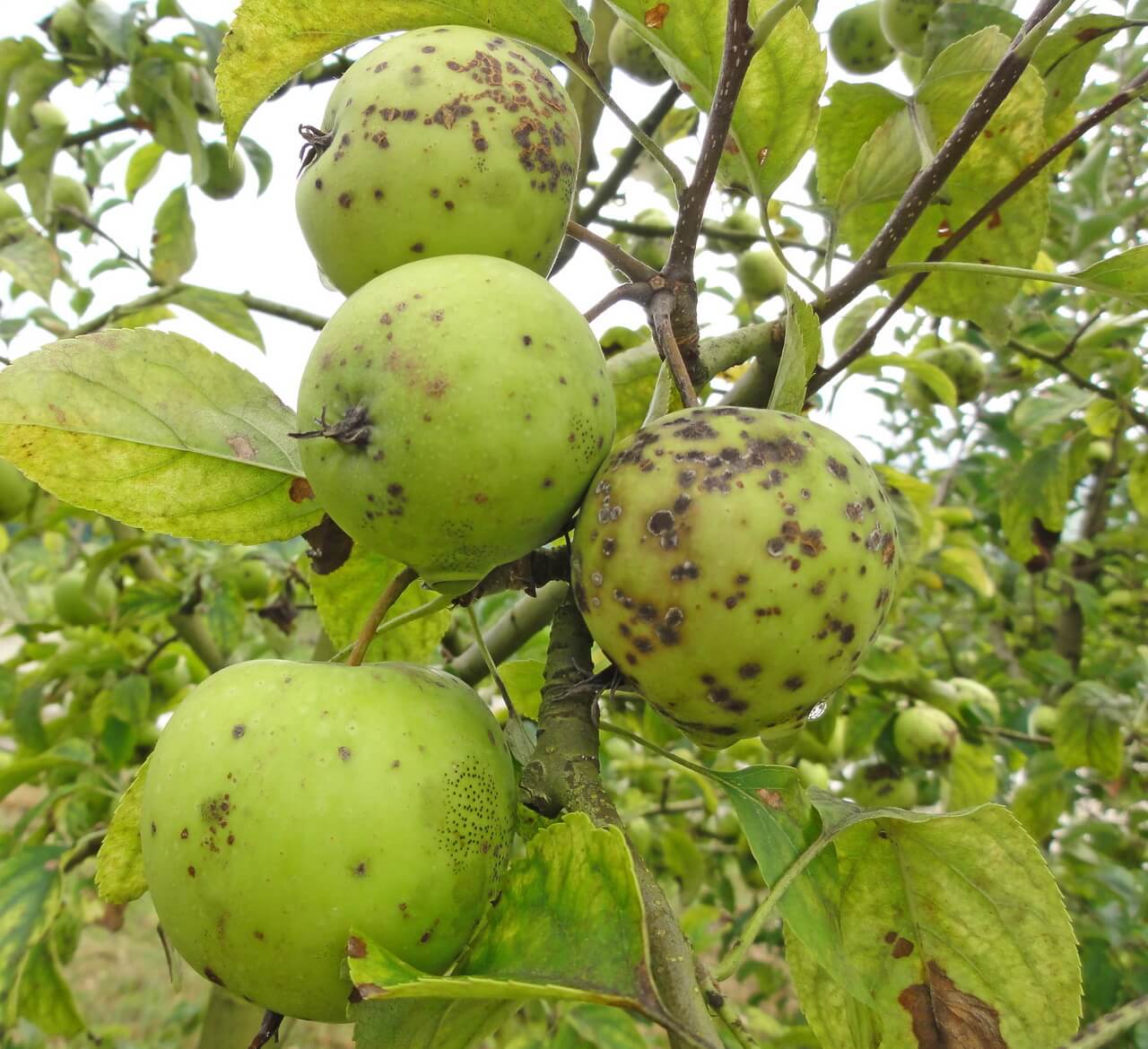 При дъждовно, студено време гъбичните инфекции могат да засегнат ябълкови дървета. Най-често срещани: струпясване, брашнеста мана, ръжда, монилиоза, цитоспороза. За да се предотвратят тези заболявания, е необходимо да се разхлаби земята, да се регулира поливането, да се изрежат стари и слаби издънки, да се почисти стволовият кръг от растителни остатъци, да се третира с течност от Бордо или биофунгициди през целия вегетационен период.