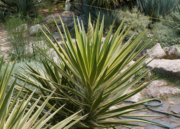 Този сорт се нарича още гигантска юка, тъй като в родината си той достига до 8-10 м височина, дебелината на багажника достига 50 см. Върху централното стъбло растат клони, върху които са разположени обемни гроздове с листа. Дължината на листа е 15-30 см, краищата са назъбени жълти или жълто-зелени, в края ще поникне трън. Изисква много свободна земя, за да расте.