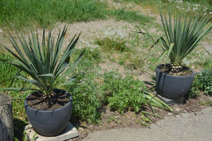 - Растение. За засаждане е подходяща юка, отглеждана в саксия или дръжка с корени. Всеки избира кой сорт да засади, но той трябва да бъде проектиран за засаждане в открита почва;
