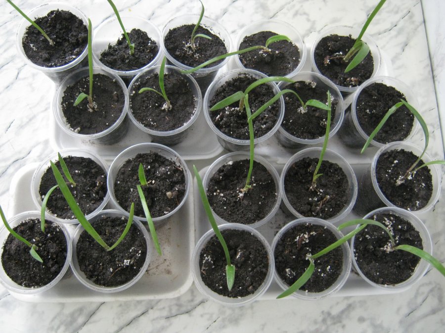- Луковиците са напълно заровени в субстрата (15 см) и поставени на разстояние 25-30 см една от друга.