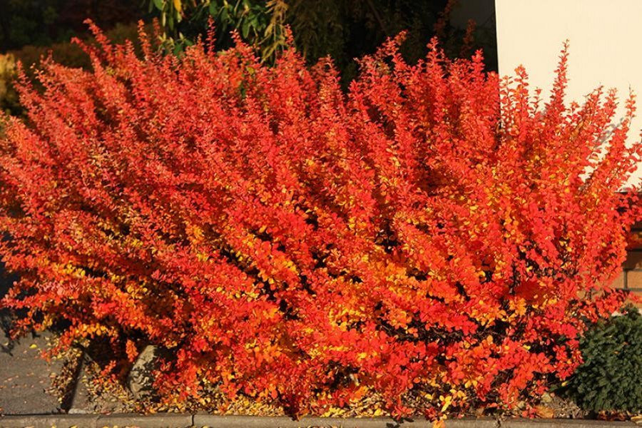 Естетичният външен вид на бербериса на Maria Thunberg ви позволява да внедрите няколко решения в дизайна на предната градина.