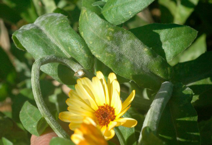 Оранжевата белокрилка се храни със сок от невен. Секретите на ларвите на тази пеперуда са плодородна почва за растежа на саждисти гъбички, които приличат на черен цвят. Пестицидите ще ви помогнат да държите насекомото далеч.