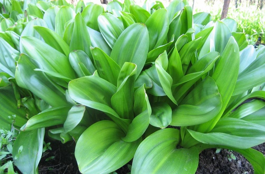 Листата са яркозелени, с леко вълнообразен ръб, овално-капковидни с тъп връх, подобни на листата на момина сълза. Те достигат 30 см дължина и 6 см ширина.