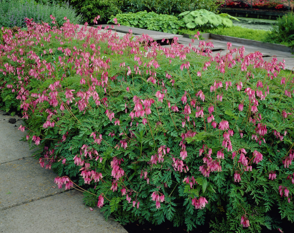 Можете също така да комбинирате няколко вида цветя в групови насаждения с различни цветове и едновременен период на цъфтеж. Дицентрата се чувства добре и под сянката на високи култури.