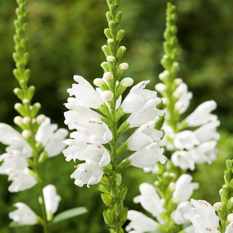 - Летен сняг на Физостегия. Височината на храста е 110 см, цветята са снежнобяли. Цветето се нуждае от подхранване и жартиерни стъбла.