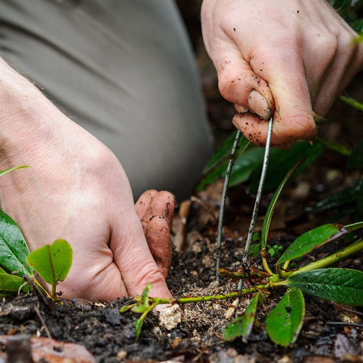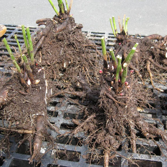 Храстът е напълно изкопан, коренището се отърсва от излишната почва и започва разделянето на леторастите и коренищата. Готовите издънки с пъпка и коренова система се засаждат в земята и се поливат обилно.