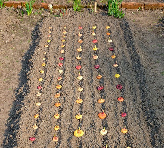 Дълбочината на лехите директно зависи от размера на посадъчния материал. Малките луковици са заровени с около 8 см, големите с 12 см.