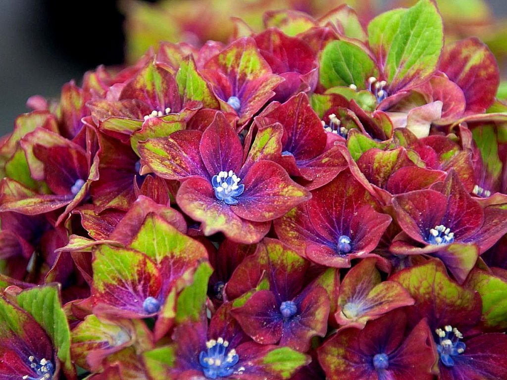 Храстът расте на височина до 1,3 м. Короната достига диаметър 1,2 м. Листата са големи, светлозелени на цвят. Този сорт има необичаен цъфтеж. Съцветията се събират от голям брой малки цветя, сферична форма. Върховете на венчелистчетата са с цвят на липа. Средата на венчелистчето е пурпурна, а центърът е лилав. Колкото по-висока е киселинността на почвата, толкова по-богати са съцветията.