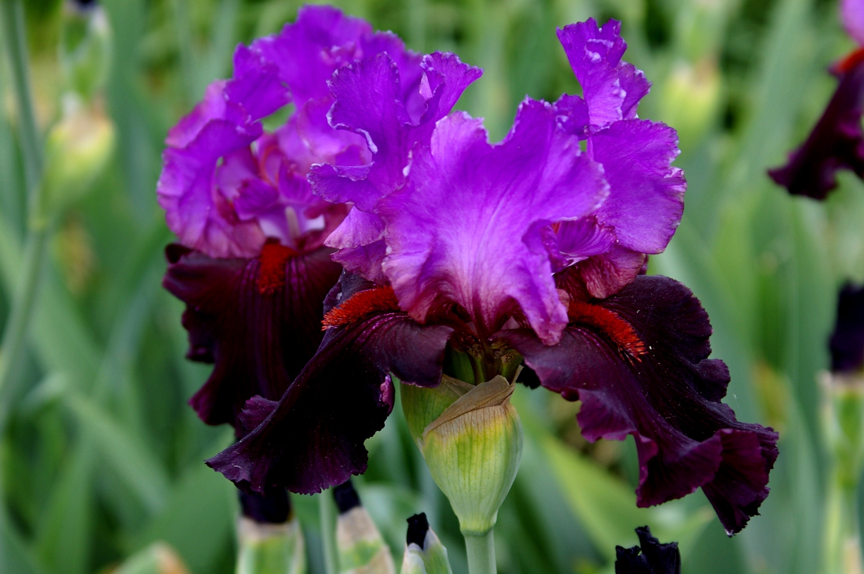 - Султански дворец. Пъпките на германския ирис са големи, венчелистчетата са тъмночервени. Цъфти от май до юни;