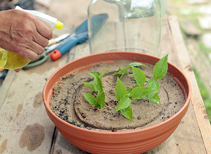 - Проветрявайте получената оранжерия ежедневно и пръскайте посевите 2 пъти на ден. Първите издънки трябва да се появят след една седмица.