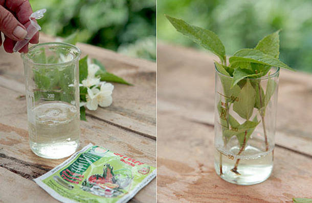 При всеки метод на присаждане се препоръчва обработката на резниците преди засаждане с стимулатор на растежа. Как да вкореним чубушник. Можете да използвате домашни средства (сок от алое, разтвор на мая, вода от върба) или химикали (корен, циркон, хетероауксин). Клончето се потапя в разтвора за 6 до 12 часа.