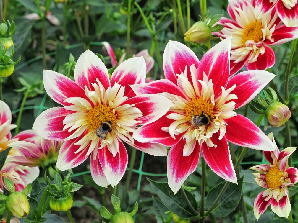 При недвойните далии езичестите цветя са разположени в един ред по периметъра на съцветието. Те изглеждат наистина прости, но поради своята непретенциозност често се срещат в градини и цветни лехи. Разнообразието от ниско растящи далии Весели момчета е широко разпространено. Недвойните плоски цветя от различни нюанси са приятни за окото и приповдигат. Сортът е надежден и изпитан във времето, лесно се размножава със семена.