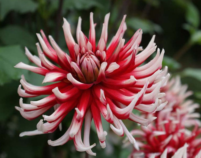 Високо разнообразие от бели полу-кактусови далии Ледена принцеса привлича със сияйна чистота на нежни венчелистчета.