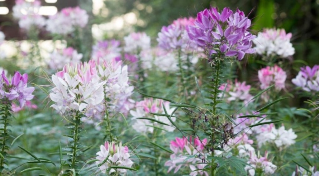 Клеомата, засадена в градината, изглежда страхотно заедно с ароматния тютюн и други растения. Той е висок, поради което често се използва за създаване на жив плет.