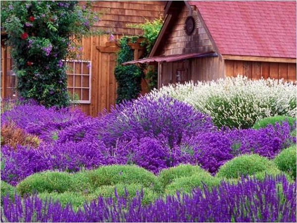 | Лавандула Hydcote | Най-популярната група растения, открити в миксбордери, жив плет. Включва няколко разновидности, които се различават по цветови нюанси. Най-атрактивният компактен лилаво-син лавандулов храст Hidcote Blue. Теснолистната лавандула Pink Hydcoot се откроява с бледорозови съцветия. |