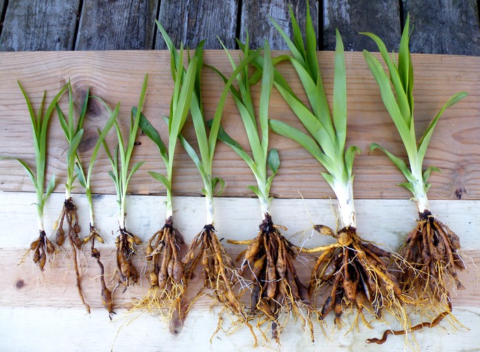 За това родителското растение се изкопава и кореновата система се измива старателно. Коренището е разделено на части на ръка. Болните или повредени части трябва да се изхвърлят, а здравите да се използват за засаждане.