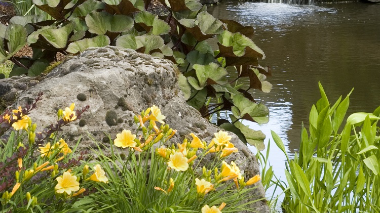 - близо до резервоара, ивица лилейник може да подчертае границите му;