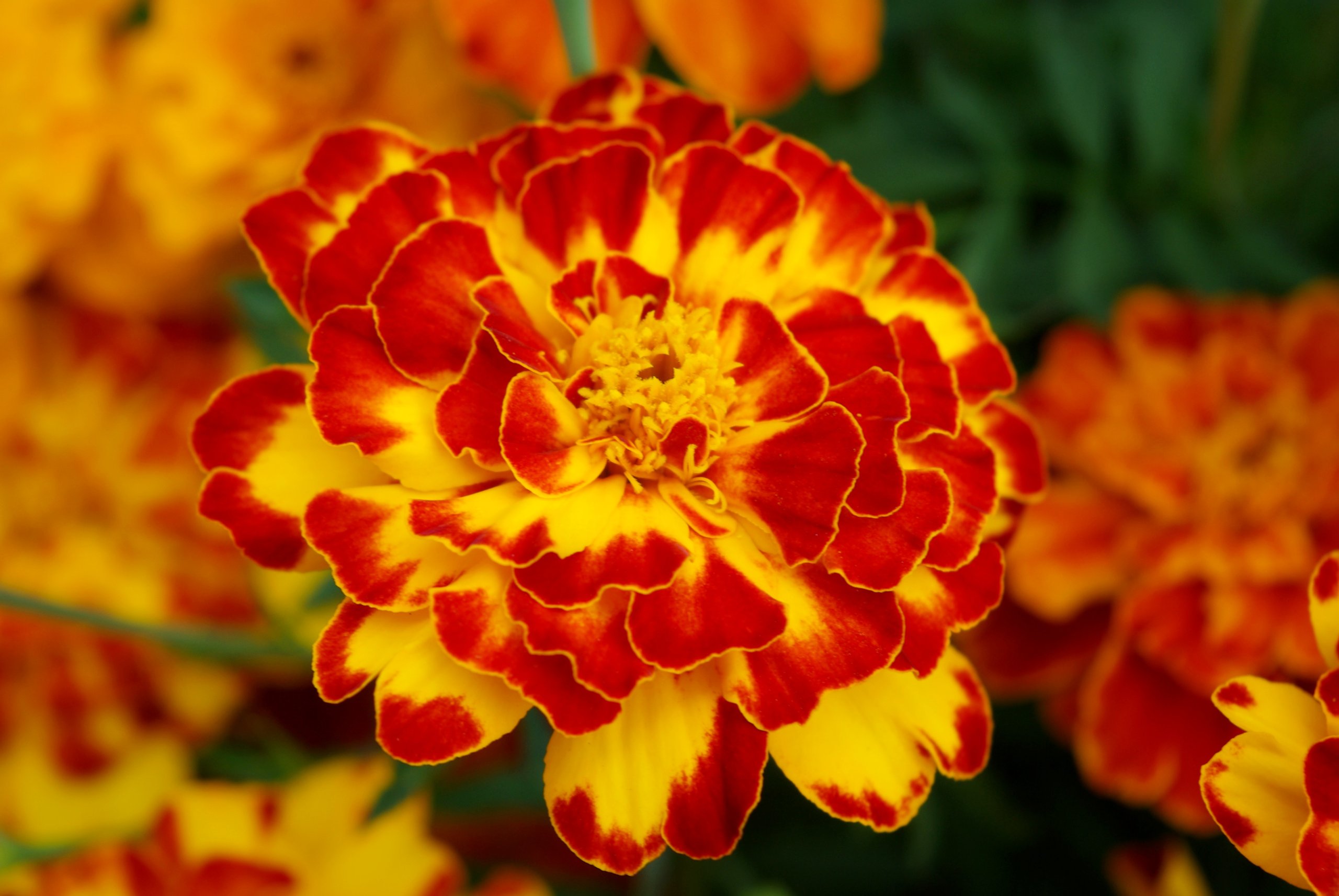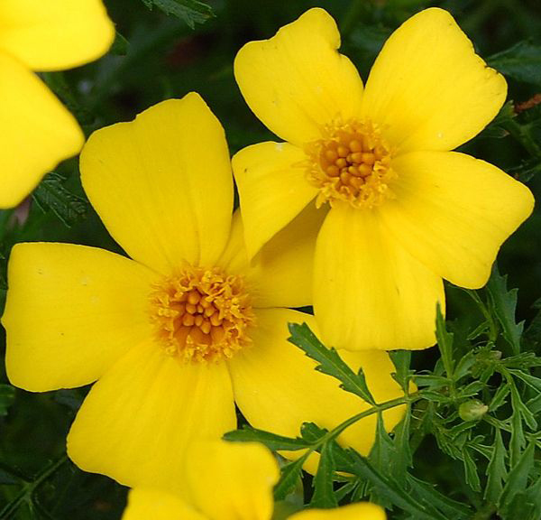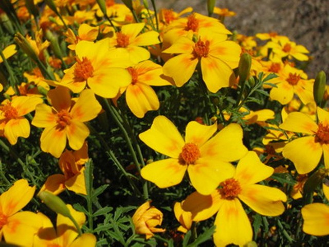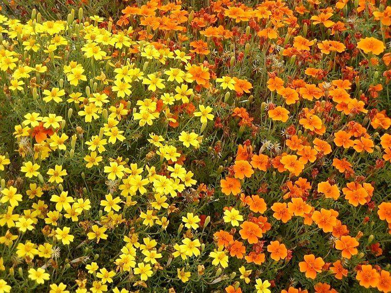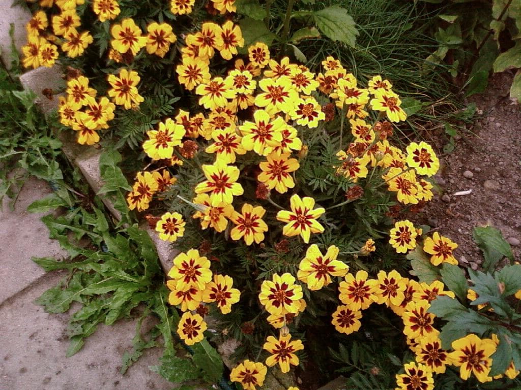 Отхвърлените джуджета тагетес с височина само 15-20 см цъфти с жълто-червен оттенък.