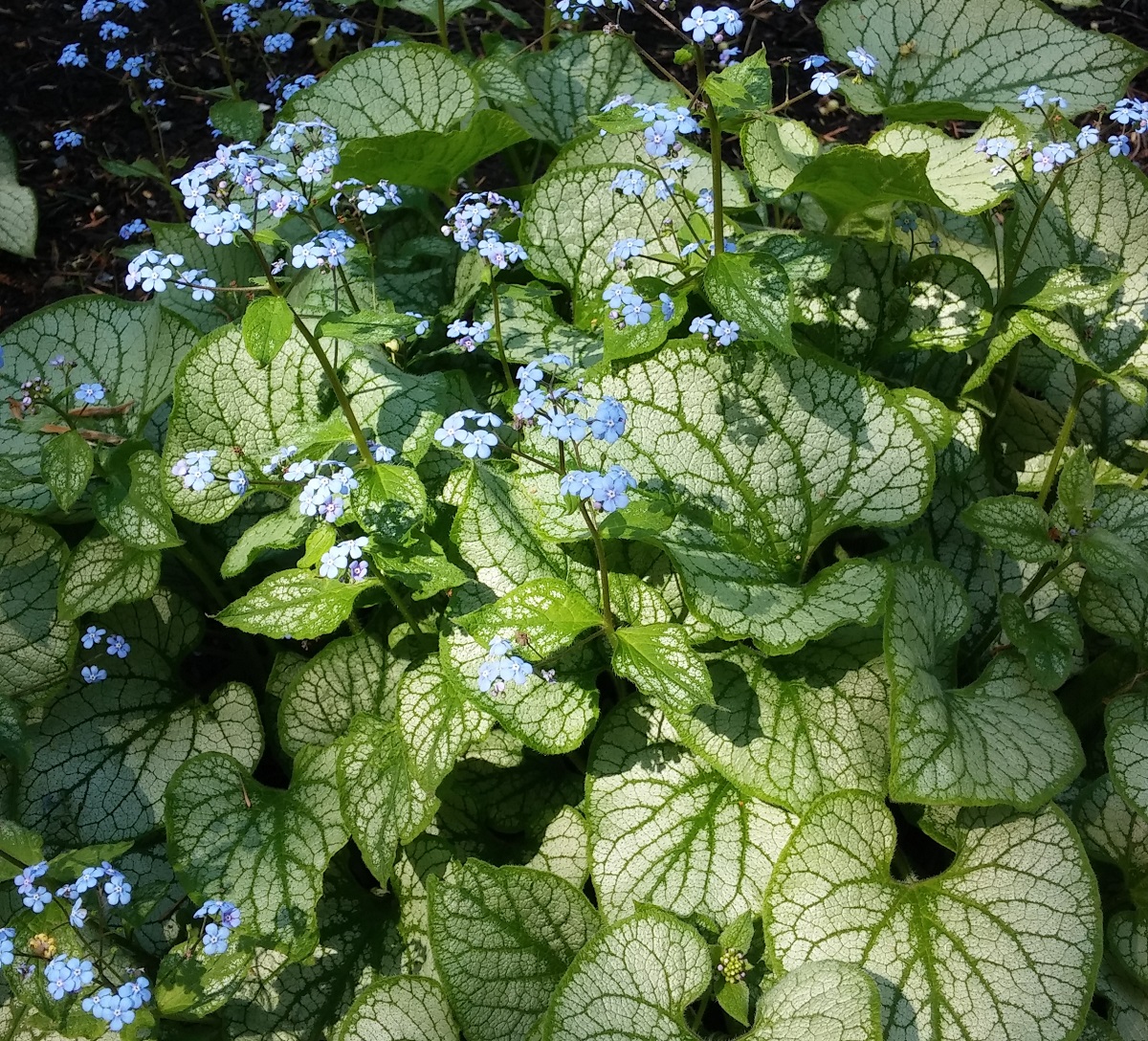 Цветя, които приличат на незабравка с големи листа, могат да се използват за украса на алпийски пързалки и оформяне на пътеки в градината, създаване на оригинални многоетажни цветни лехи. Папрати, хости и ниско растящи иглолистни дървета, както и цъфтящи растения: хортензии, зюмбюли, иглики, стават добри съседи за нея.