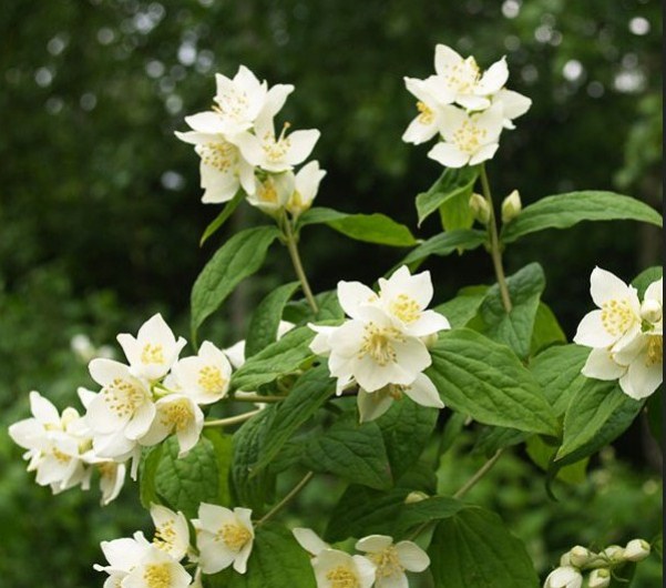 Културата Philadelphus coronarius дойде в европейската част от региона на Кавказ. Храстът расте до 3 метра височина. Издънките са тънки, разклонени, с противоположно растящи листа. Листът има формата на лодка, дълга до 10 см. Ароматните цветя до 4 см в диаметър, се състоят от 4 овални бели венчелистчета, събрани в съцветия, са отлично медоносно растение.
