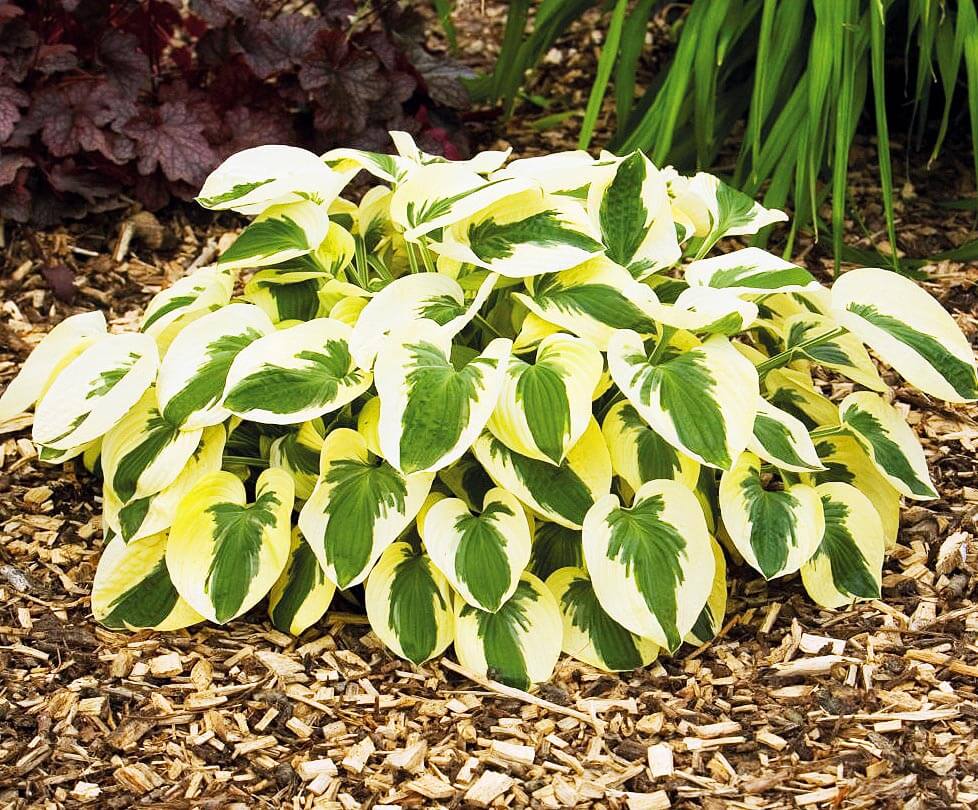 Най-популярният вид бяла домакиня е перата на White Feather. Първоначално листата са с кремав отпечатък, но постепенно позеленяват до края на цъфтежа.