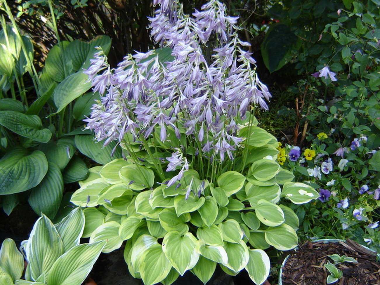 Благодарение на разнообразието от сортове хоста, нюанси и шарки на листата и неговата непретенциозност, можете сами да създадете изключителни растителни групи от култури, принадлежащи към различни семейства в градината. Високи, големи или гигантски сортове ще преобразят тропическа градина, миниатюрни ще украсят тераси и малки цветни лехи. Бонус - различни моменти, когато пъпките започват да се отварят и цъфтят. Когато някои растения завършат цъфтежа, други просто ще започнат да се активират. По този начин крайградската зона винаги ще бъде светла и цветна.