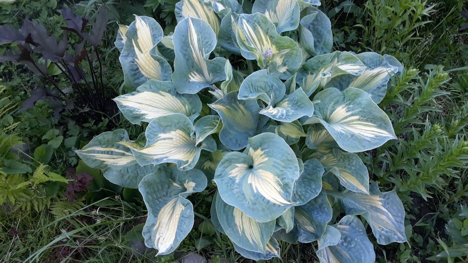 Всеки цветар мечтае за синя домакиня, която расте в градината му. Изглежда много необичайно: сърцевидни, доста обемни листа със синьо-зелен цвят са покрити с восъчен цвят. Ако потъркате лист от лист, се оказва, че той е ярко зелен. Плаката просто я прави синкава. След излагане на слънчева светлина тя става по-малко забележима.