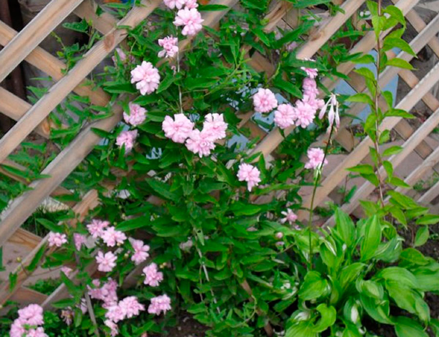 Сортът е отгледан в резултат на селекция и именно той стана широко разпространен в Русия, което се обяснява с неговата устойчивост на екстремни температури. Стъблото е дълго до 3 м, цялото покрито с големи розови пъпки. Листата от този вид са с форма на стрела, покрити с косми.