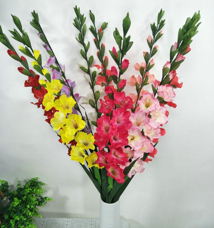 Ароматният клас на съцветието на гладиолите се състои от големи, при повечето видове - едностранни цветя, които са двуполови. Всяко цвете има два кожести зелени прицветника. Чашелистчетата и венчелистчетата са комбинирани в тръбна структура. Тичинките са прикрепени към основата на фуниевидния околоцветник. Цветът на цветята е разнообразен: от бяло, жълто, бледорозово до рубинено червено и лилаво, понякога те са многоцветни, както при хибридните сортове.