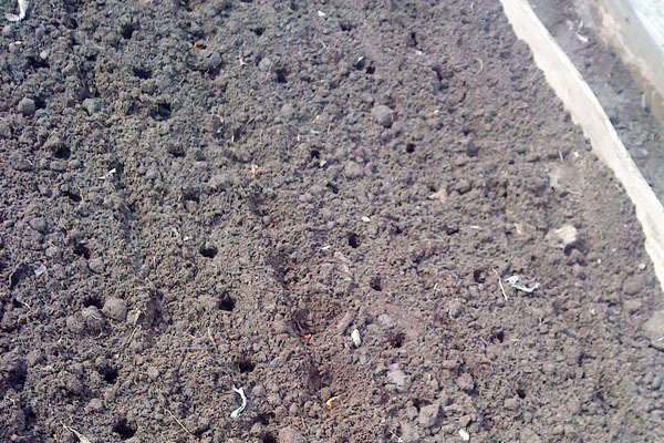 - ямите се пълнят с хумус и пръст от трети, натъпкани;