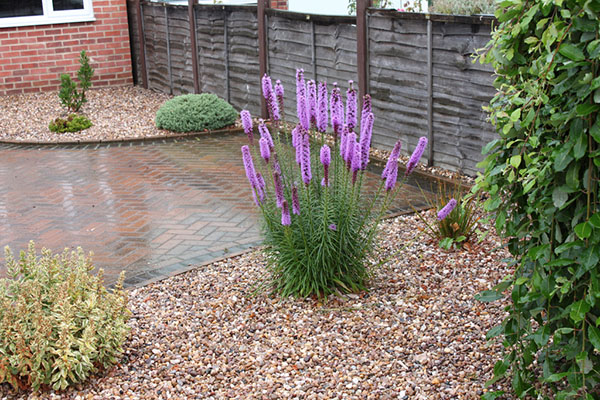 Когато оформяте цветно легло, не трябва да забравяте за комбинацията от нюанси. Повечето сортове Liatris са оцветени в снежнобял, лилав и други тонове, можете да добавите жълти или червени подвидове към тях.
