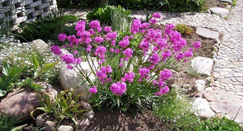 - Смолка. Този сорт принадлежи към viskariya lychnis. Името му идва от факта, че горната част на растението е лепкава. Има цветя от розов, бял или пурпурен цвят. Цъфтежът продължава от май до юли.