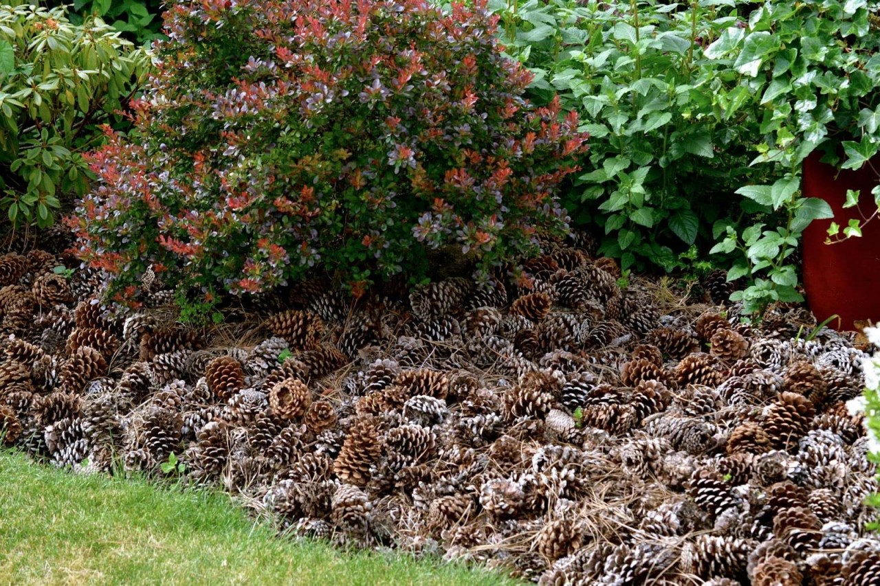 Финият чакъл, кората на дърветата, торфът, боровите и смърчовите шишарки се използват като материал за мулчиране на каменни култури.