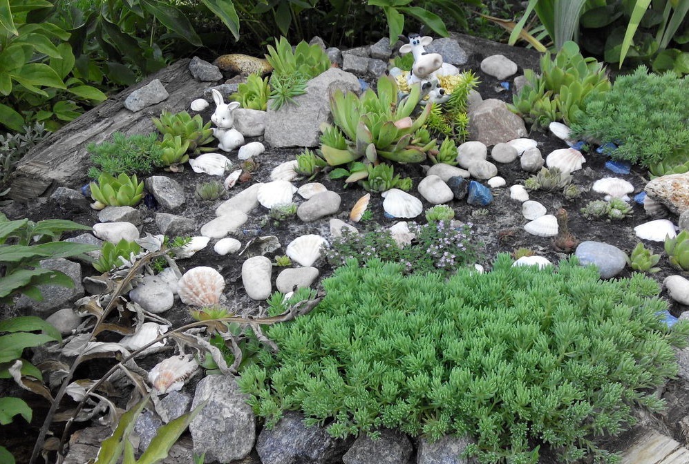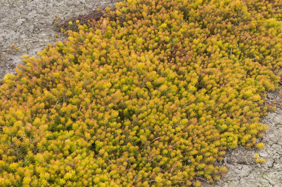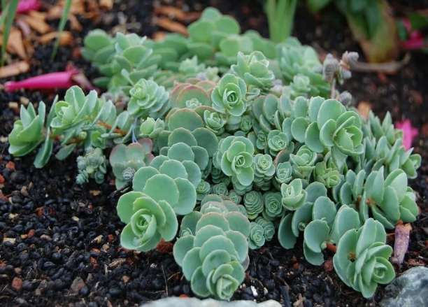 Sedum се използва широко за създаване на хармонични пейзажни композиции.