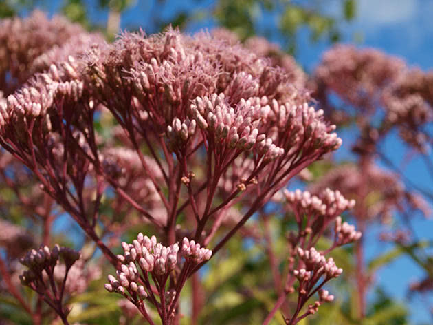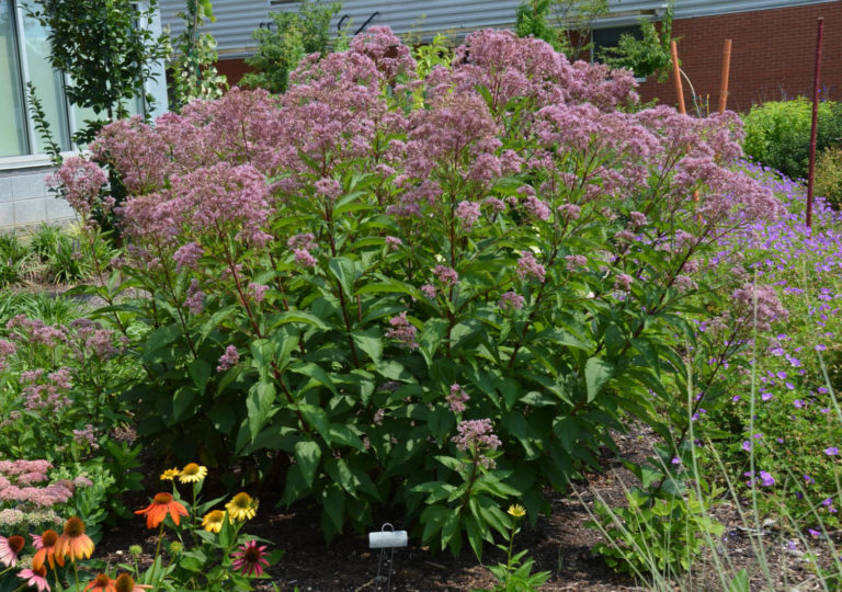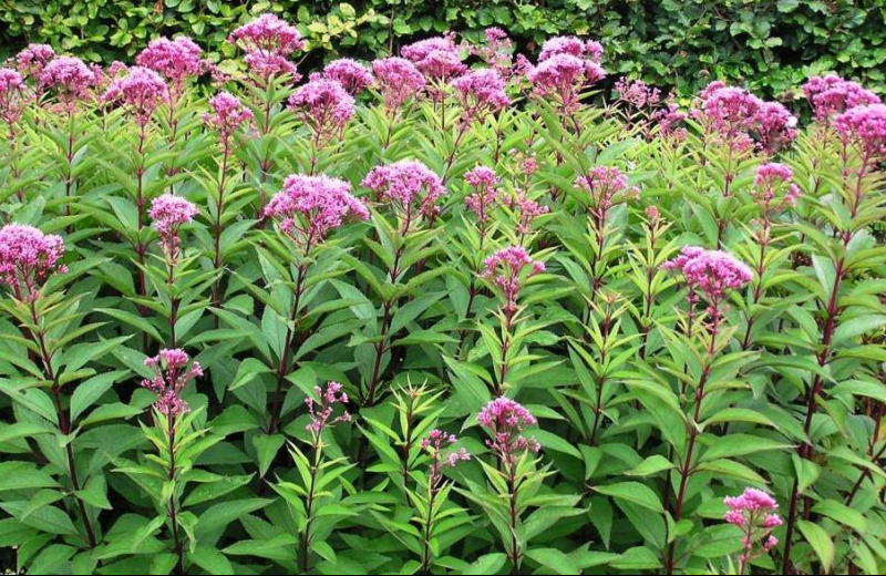 Северноамериканските гори са дом на Eupatorium Atropurpureum. Среща се и по речните брегове. Височината на възрастно растение достига 1,8 м. Листните плочи са подредени под формата на вихри (няколко излизат от една точка на стъблото, гледайки в различни посоки). Съцветията са люлякови.