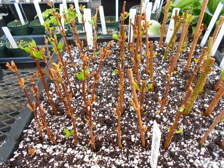 - Прибирането на резници се извършва през зимата за засаждане в земята в началото на пролетта. За това необходимият брой издънки се нарязва и се увива в хартия. Заготовката се поставя в хладилника в секцията за съхранение на зеленчуци. Фиданките се засаждат в началото на май. Преди вкореняване твърдите издънки трябва да се накиснат в разтвор на манган.