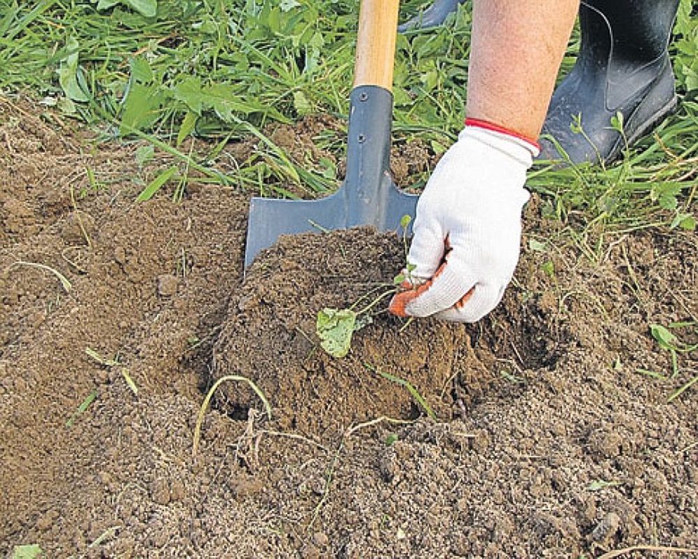 - Изкопайте мястото с дълбочина 20-25 см. Добавете изгнил тор;