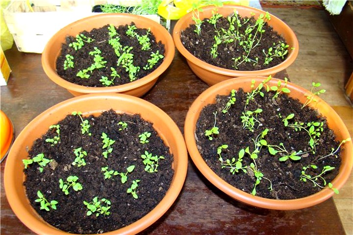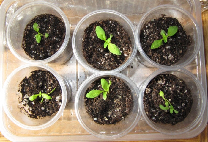 - Семената се засяват повърхностно, почвата се навлажнява с пулверизатор.